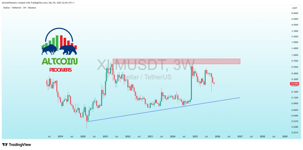 若XLM能坚守趋势线支撑,可能引发向更高价位的突破。伴随上升趋势线与下降楔形形态的共同作用,交易员正密切关注这些关键价位。