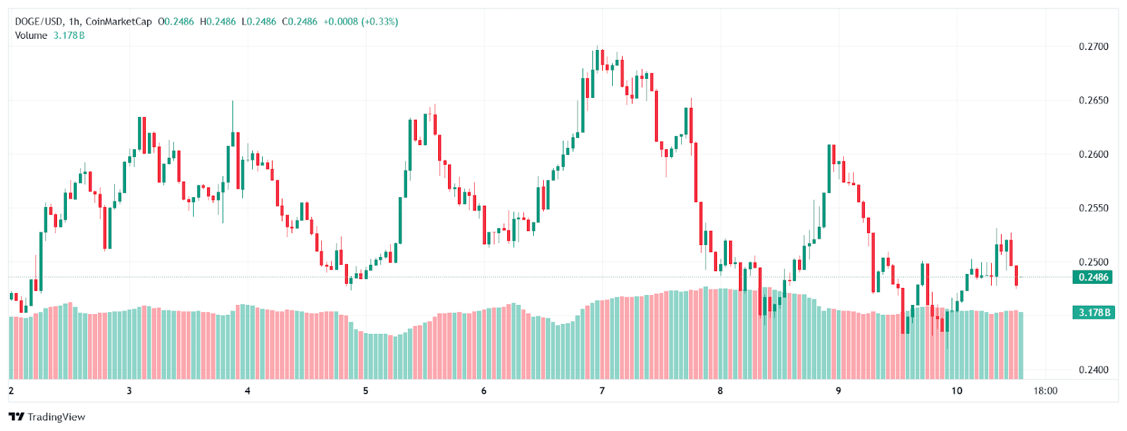 狗狗币当前价格0.248843美元,单日微涨1.72%。日均30亿交易量巩固了其最具流动性模因币的地位。技术图表显示本周在0.24-0.26美元区间波动,但市场情绪坚定看涨——近半数参与者对2025年Q4给出"强烈看涨"评级。