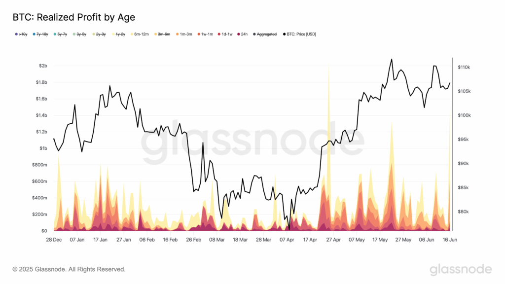 Glassnode 6月17日报告显示,上周主要获利抛售来自持有BTC超过12个月的钱包。但趋势已转变为6-12个月持有者主导抛售。值得注意的是,仅6-12个月持有者就实现9.04亿美元利润,创年内第二高单日盈利记录。