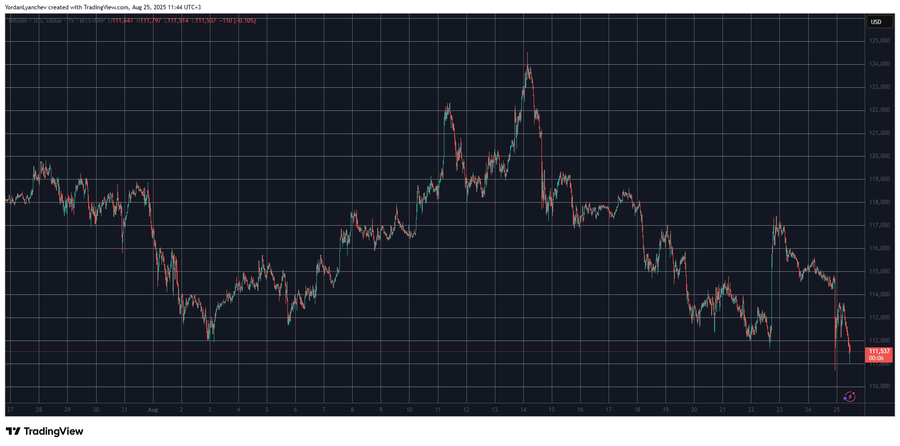主流加密货币上周持续承压,周五在美联储主席鲍威尔重要讲话前,更跌至112,000美元下方的多周低点。尽管鲍威尔暗示未来可能降息后比特币瞬间冲高至117,000美元,但涨势未能延续,周末多数时间维持在115,000美元附近。