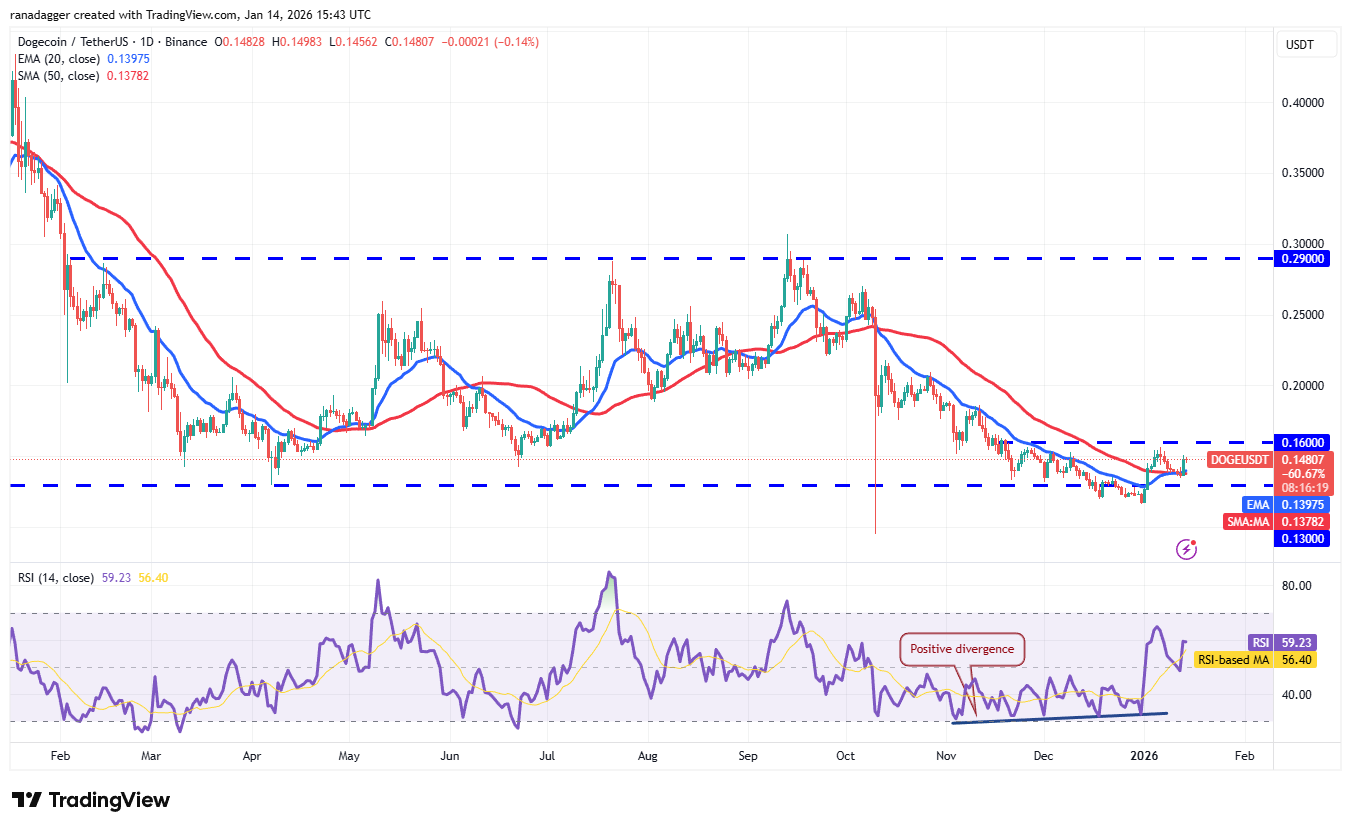 如果买家将价格推高至0.16美元阻力位上方,DOGE/USDT交易对将完成一个看涨的头肩底形态。随后,狗狗币价格可能向0.20美元的目标价位上涨。