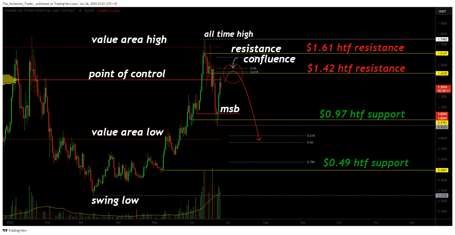 SPX6900在经历大幅下跌后从支撑位反弹,但目前面临强劲阻力。若无法重新站上1.42美元关口,可能确认完全转熊并开启更深度的下跌。