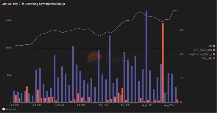 然而当ETH完成解除质押后,往往会转入交易所,随后通常伴随价格下跌。