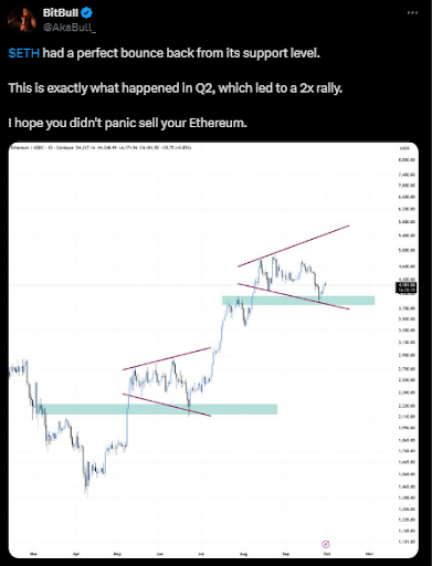 $ETH持有者:耐心终得回报,恐慌抛售者错失良机 | 来源:BitBull,X