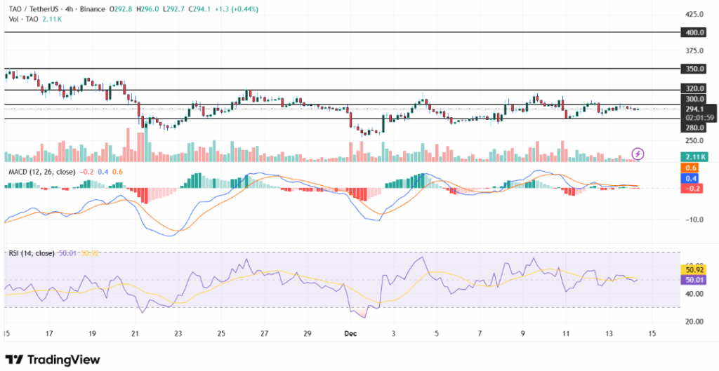 Bittensor将于2025年12月14日迎来首次减半,TAO供应量将减半,这可能会推动其价格上涨。Bittensor价格已显现看涨势头,若能突破阻力位可能站上300美元。尽管存在轻微看跌信号,但在市场条件允许的情况下,减半后价格有望冲击400美元关口。