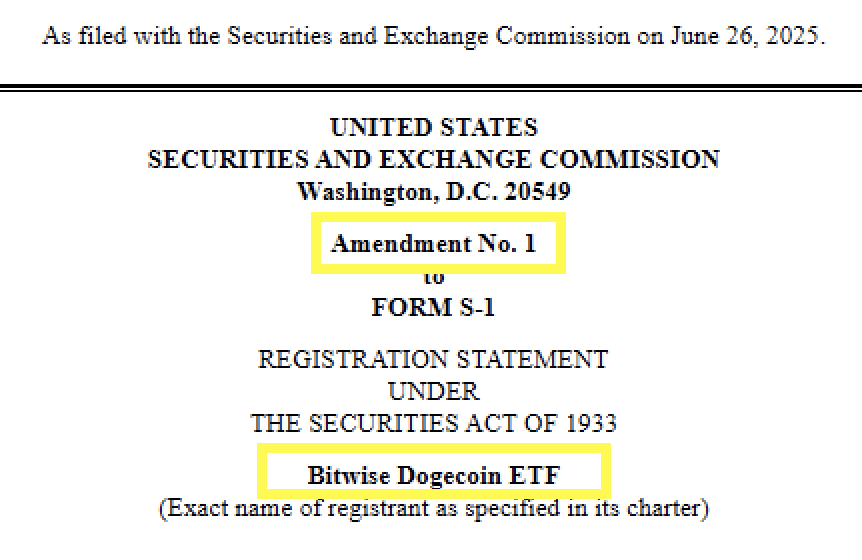 6月26日提交的文件显示,随着Bitwise试图在不断扩大的现货加密ETF市场中拓展业务版图,相关进程正在推进中。