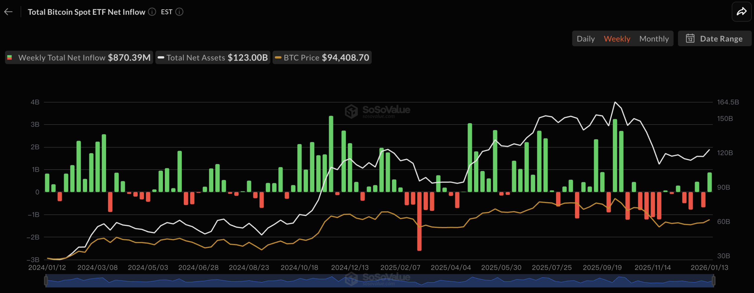 比特币和以太坊现货ETF在2026年初迎来大规模资金流入