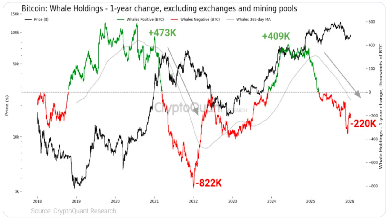 至2025年,巨鲸持仓量已下降约22万枚BTC。