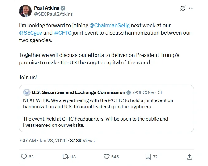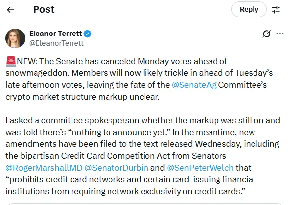 这些文件是在参议院农业委员会对加密货币市场结构法案进行一再推迟的审议之前提交的。该委员会原计划在1月15日推迟了较早的投票后,于周二举行会议。