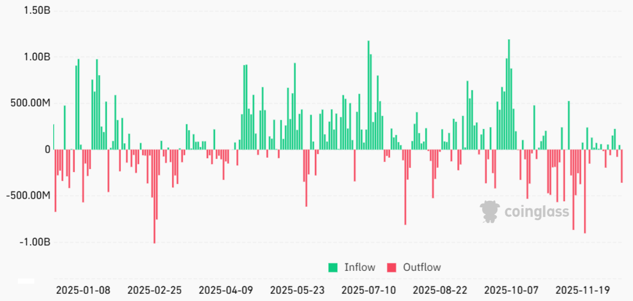 周一现货比特币ETF录得3.58亿美元净流出,创下逾三周最大单日撤资纪录。这一动向引发市场猜测:在90,000美元心理支撑位失守后,机构投资者可能正在缩减头寸。更重要的是,比特币当前价格较126,219美元的历史高点下跌31%,此次回调可能预示着持续至10月的牛市阶段已告终结。
