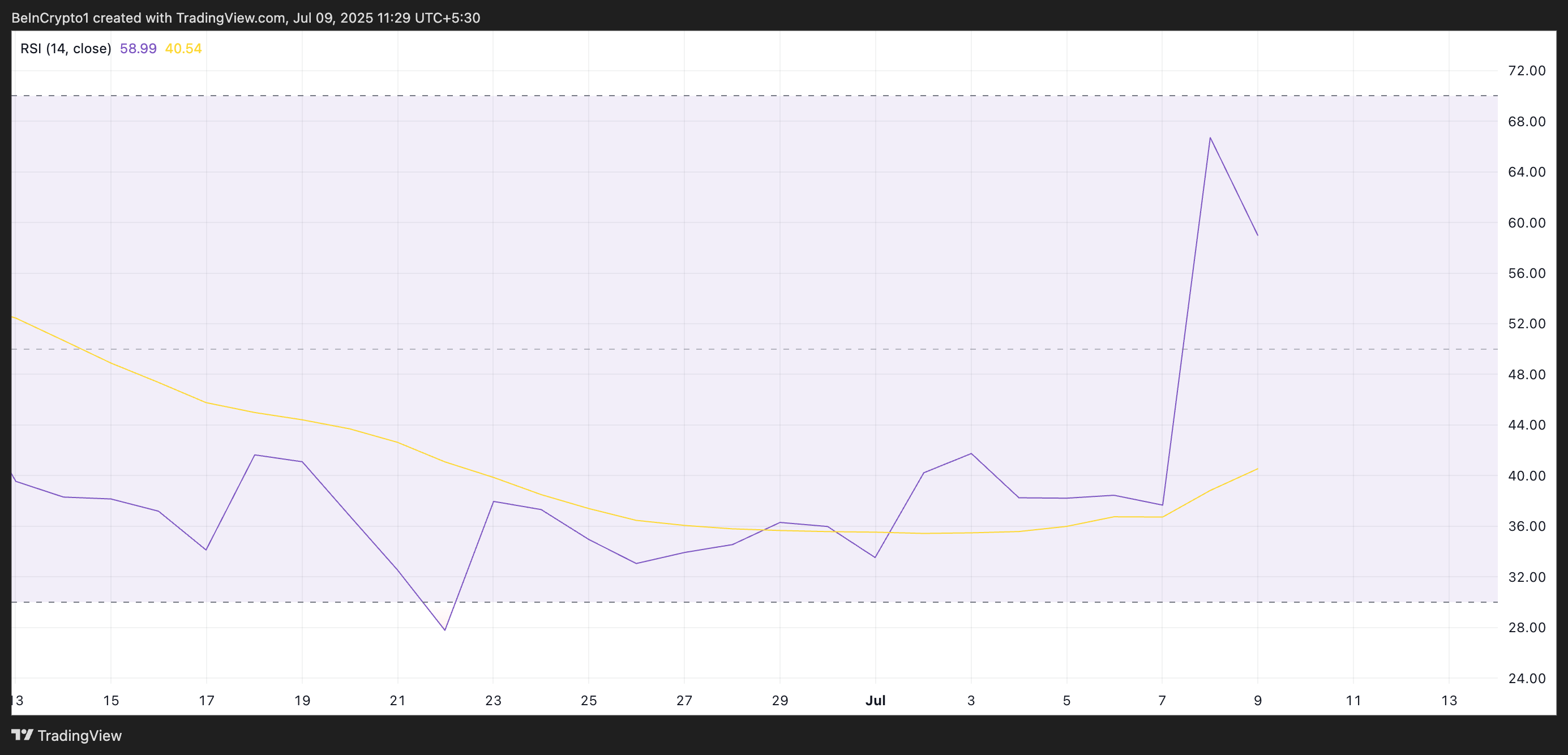 CRO的相对强弱指数(RSI)显示买压远未耗尽。截至撰稿时,这个衡量资产超买超卖状态的关键动量指标位于58.99。
