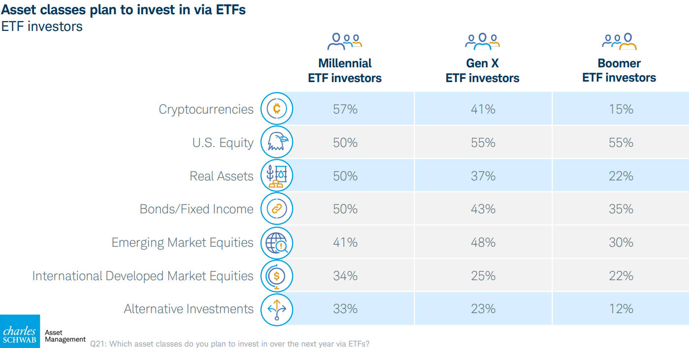 • 千禧一代对加密ETF热情最高,57%表示有投资意向