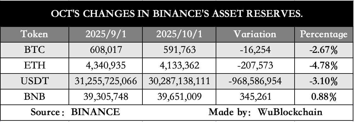 最新报告显示,用户BTC持仓量较上月下降2.67%。目前币安平台持有591,000枚BTC,较9月减少16,200枚。同期ETH储备下降4.78%至413万枚,USDT资产也减少3.1%。这些加密货币主要被转移至冷钱包存储。