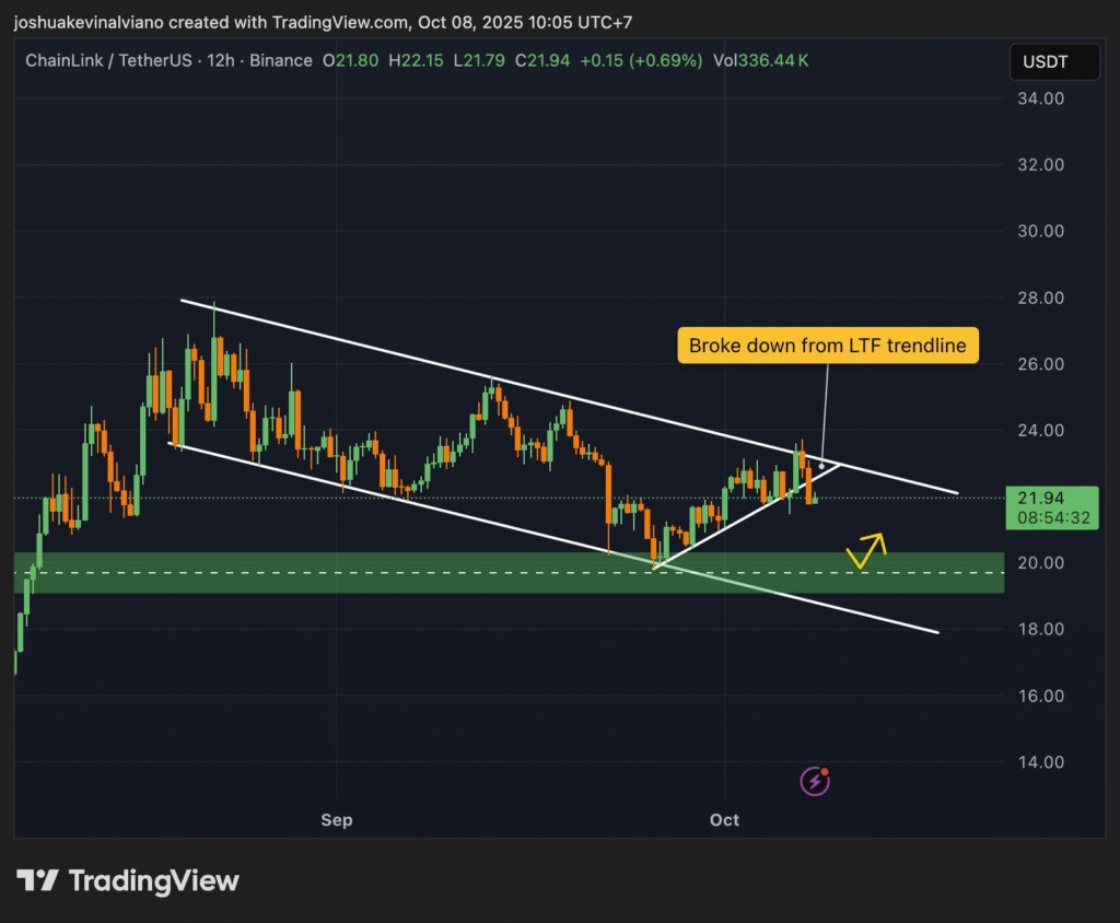 Chainlink价格跌破趋势线意味着看涨动能正在消退。在经历强劲上涨后,该破位表明短期修正正在进行。随着趋势线失守,价格走势或将测试更低支撑位。