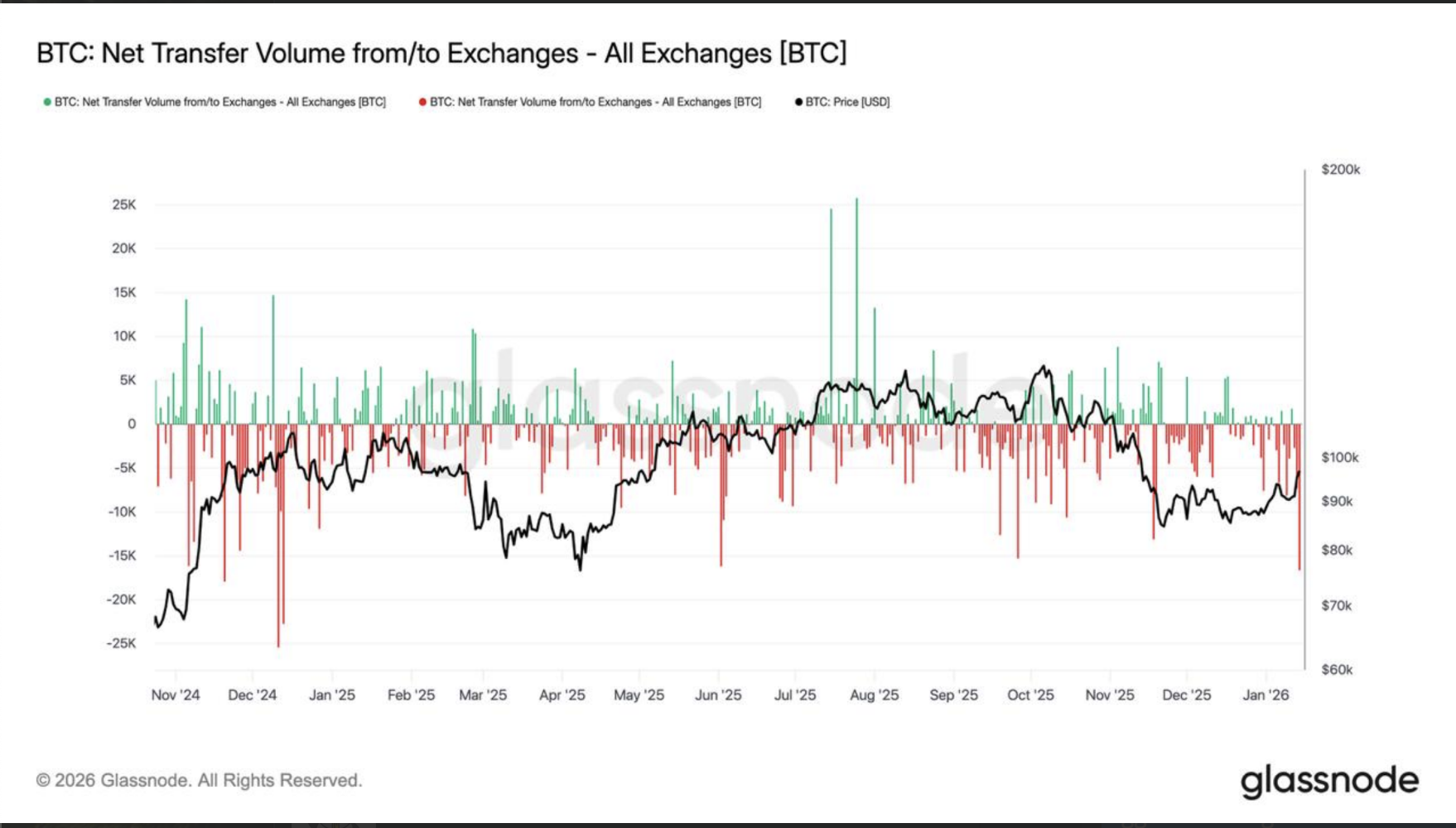 分析师DarkFrost指出:"这显示远古持有者的抛售也已放缓,他们有时可能产生的巨大抛压现已明显减弱,当前主导趋势似乎更倾向于持币而非派发。"远古持有者抛售放缓的现象,恰与2024年12月以来最大规模的比特币交易所净流出相吻合。
