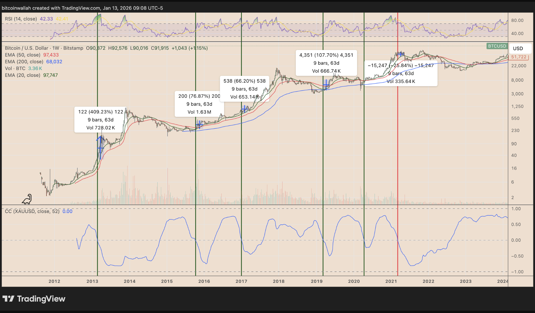 比特币-黄金负相关性:牛市前兆?