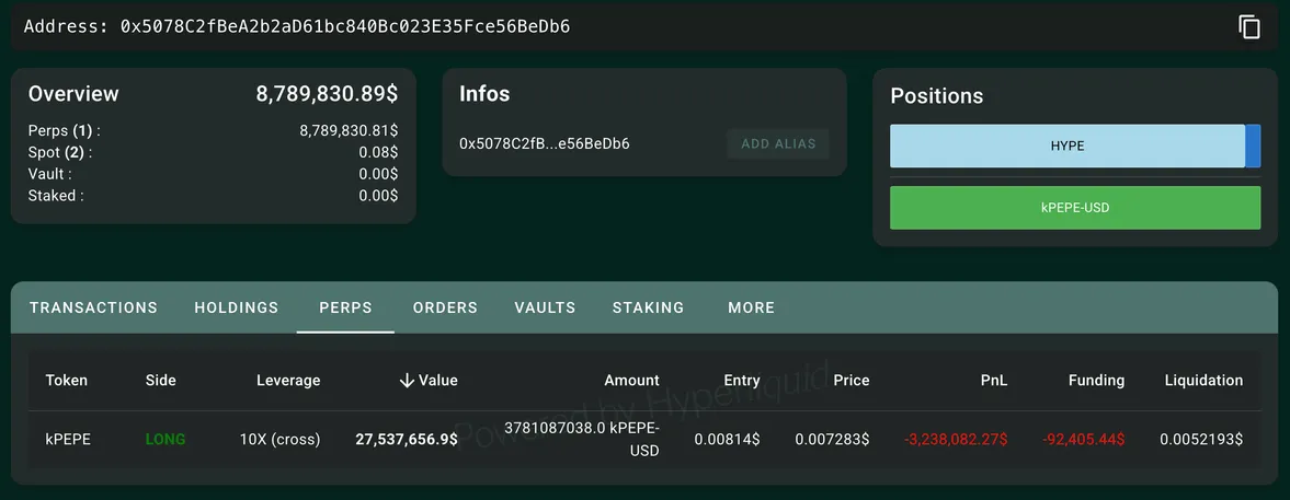 如果PEPE价格继续下跌并达到阈值,Hyperliquid将强制平仓。这可能会进一步压低PEPE的价格。这种平仓通常会导致市场加剧动荡。与此同时,巨鲸决定追加保证金表明他们致力于捍卫自己的头寸。然而,这也表明他们面临着维持偿付能力的压力。
