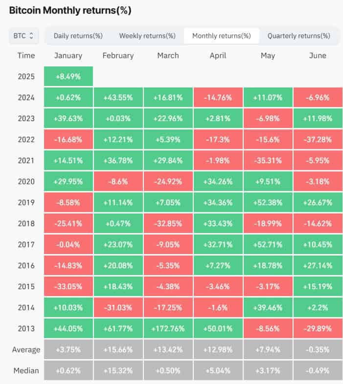 历史上,三月份对比特币价格也较为有利,尤其是近年来,自2019年以来六个月中有五个月出现上涨。然而,对于这种最大的加密货币来说,一月份的表现并不那么亮眼,历史上这个月的涨跌大致相当。