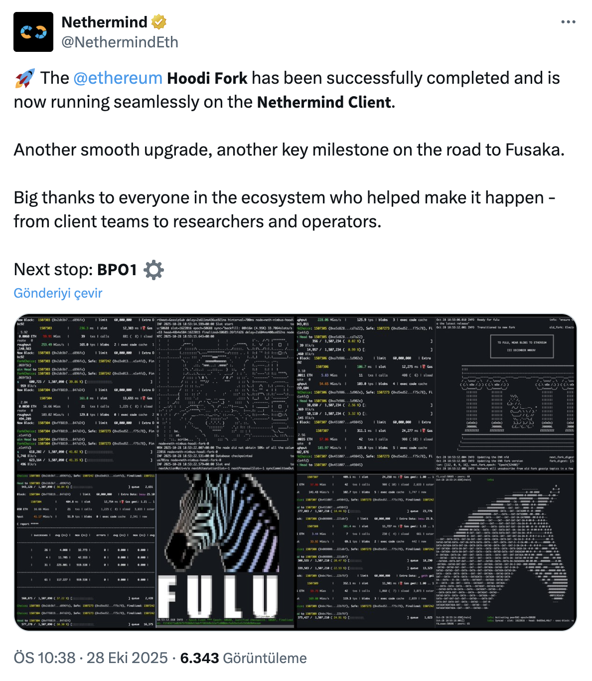 Hoodi是Fusaka升级前的最后一个测试环境。此前在10月份于Sepolia和Holesky测试网上实施的升级已成功完成。Holesky在10月1日激活后按计划关闭,而Sepolia则于10月14日完成了更新。