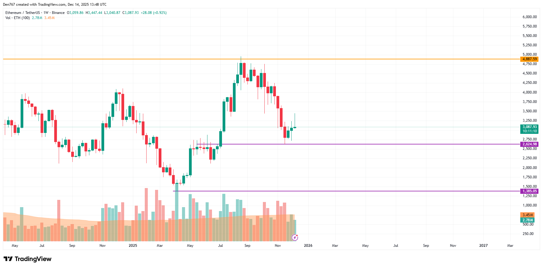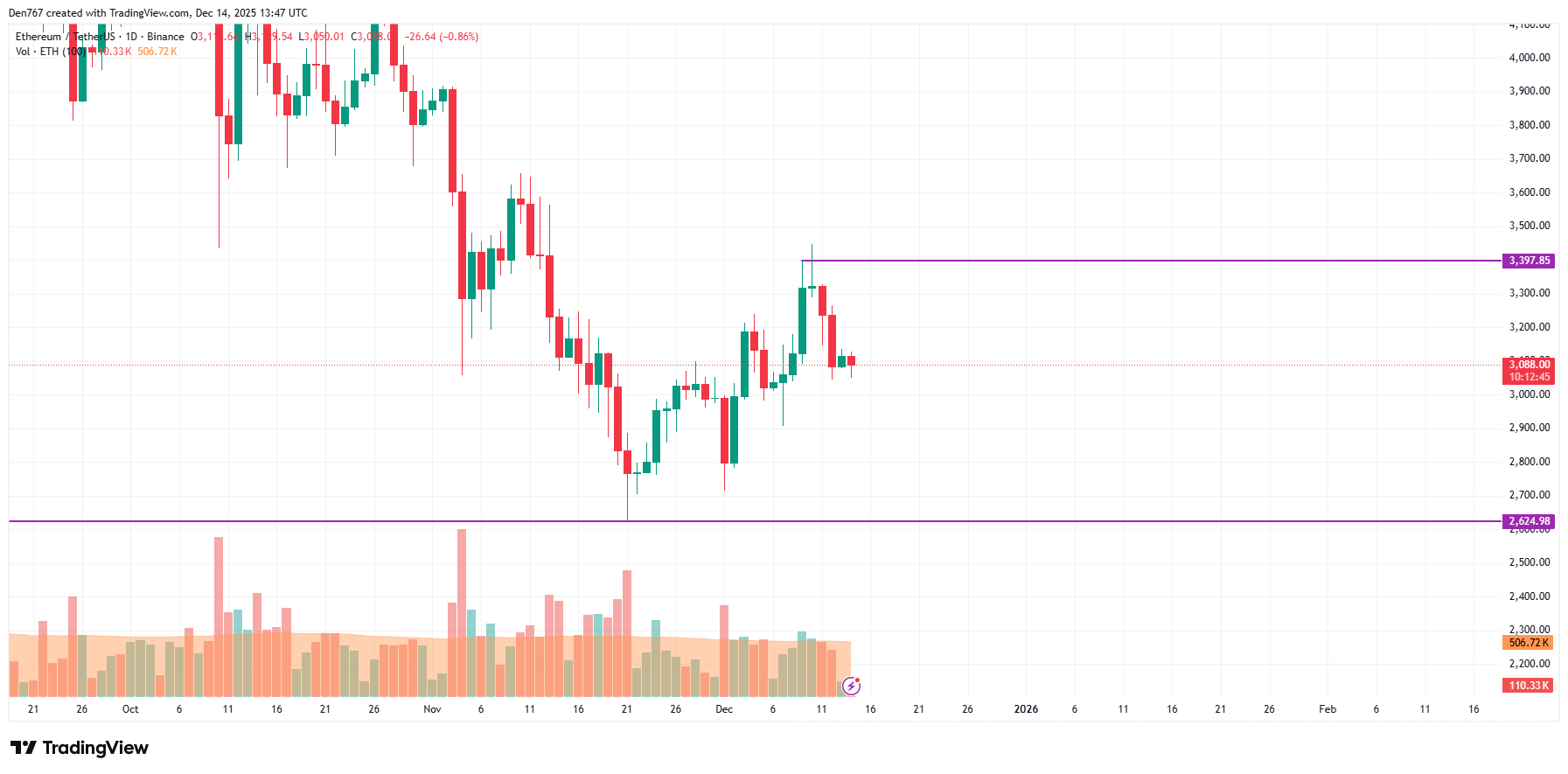 截至发稿,以太坊交易价格为3,091美元。