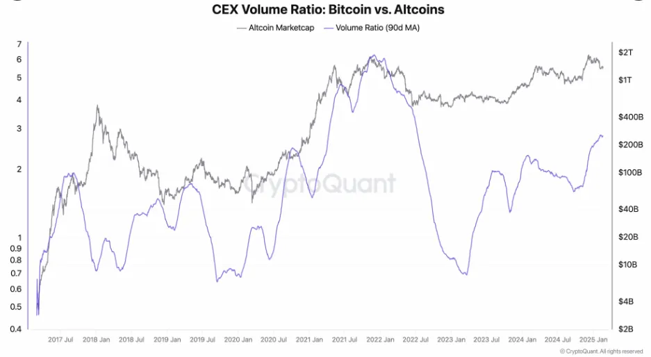 CryptoQuant首席执行官Ki Young Ju表示,期待已久的山寨币季节(alt season)已经到来。然而,这位分析师指出,此轮行情与以往由比特币向山寨币资金轮动驱动的周期不同,呈现出独特的特征。