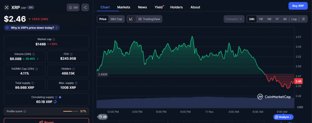 尽管山寨币市场普遍复苏,但瑞波币XRP今日交易价仍停留在2.46美元,难以突破关键阻力位。该代币24小时内下跌1.64%,在整体市场盘整的背景下,交易者保持谨慎态度。虽然XRP仍是跨境支付的核心选择,但投资者正将资金转向类似Noomez(NNZ)的新型预售项目——这个经过审计的透明项目已进入第三阶段,链上需求持续攀升。