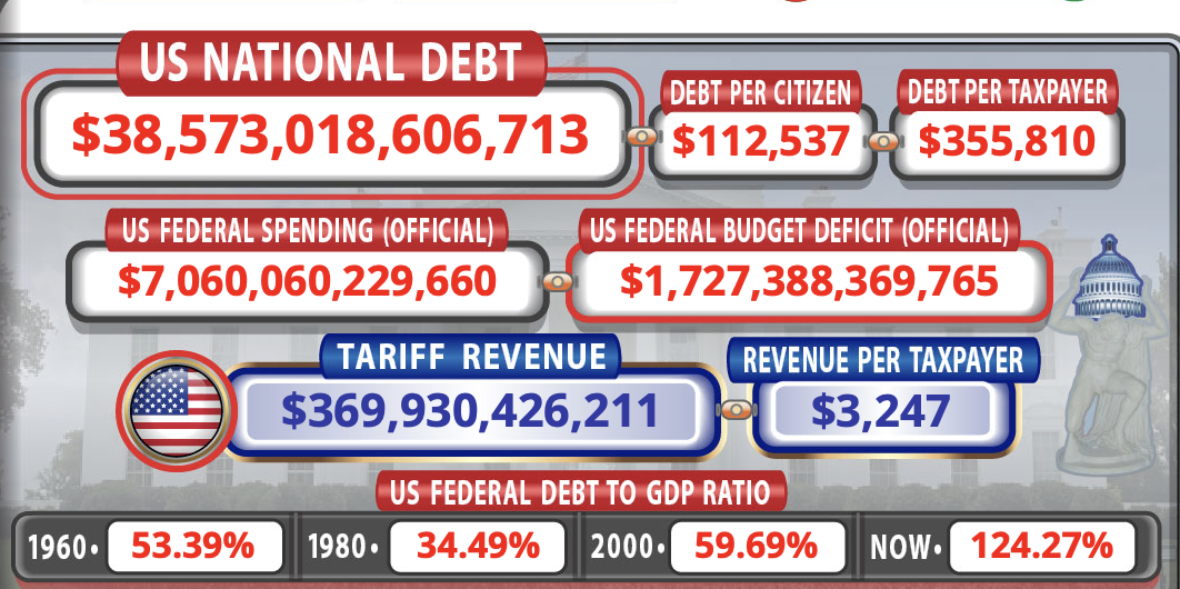 就个人层面而言,债务负担约为人均11.3万美元,或每位纳税人承担超过35.5万美元,这深刻表明联邦借贷已在经济中蔓延至何种程度。