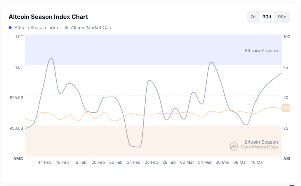 讨论减少的同时,关于下一个山寨币季节是否会与以往周期相似的争论仍在继续。Bitwise投资主管Matt Hougan在3月6日表示,那种几乎每种加密货币全线上涨、狂热的山寨币季节可能不会回来了。