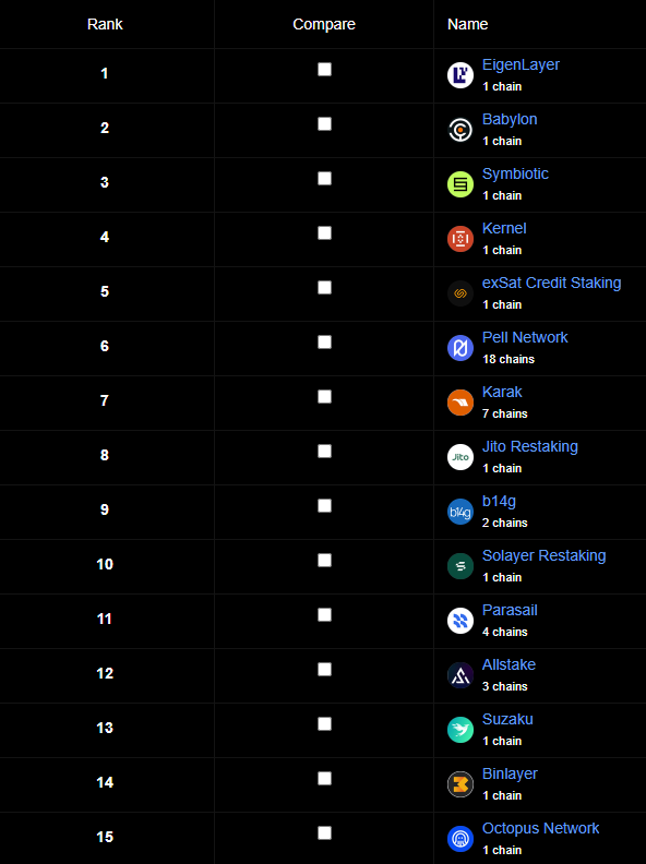 DefiLlama的数据,Babylon目前在再质押协议的总锁定价值(TVL)中排名第二,仅次于EigenLayer。