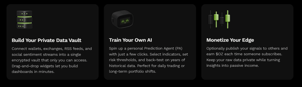 Ozak AI是基于区块链的加密项目,专注于为金融市场提供预测性AI和高级数据分析的技术平台。通过机器学习算法和去中心化网络技术,该平台能提供实时、准确且可操作的洞察,帮助加密爱好者和企业做出正确决策。
