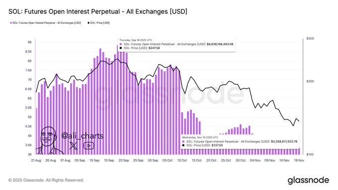Solana期货未平仓合约三个月内缩水超50亿美元,交易者削减杠杆