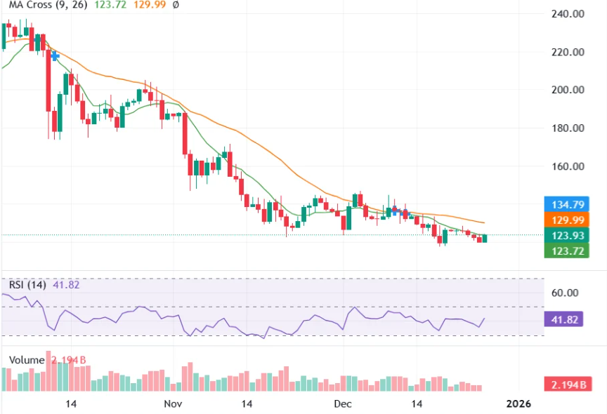 要实现140美元目标价位,Solana需从当前水平上涨约13%。考虑到其历史高点295美元,这一潜在涨幅仍处于合理的短期波动范围内。当前120美元附近的稳定性结合卖方活动减弱,为价格上行创造了空间。