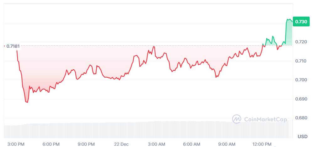截至发稿时,ASTER交易价格为0.73美元,市值超过18.2亿美元,过去24小时上涨1.6%。