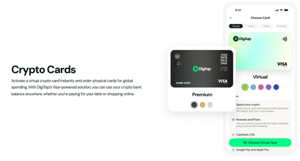 近期与Visa的合作让用户能够像使用现金一样便捷地使用加密货币。Digitap用户现在可获得实体或虚拟Visa预付卡,在全球范围内线上线下通用。用户只需充值法币或加密货币,即可在Visa受理的任何地方即时消费。