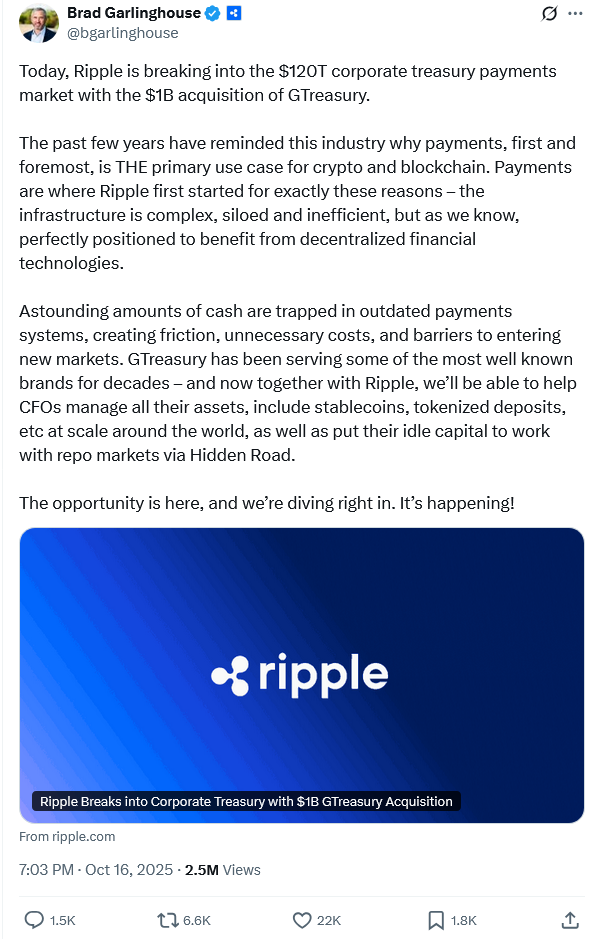 分析师Stern Drew因强调Evernorth项目在XRP社区引发热议。该项目计划融资超10亿美元打造最大机构级XRP资金池,可能成为Ripple迄今最重要的发展之一。与此同时,XRP机构采用率稳步提升,Gumi公司近期1700万美元的购入便是例证。