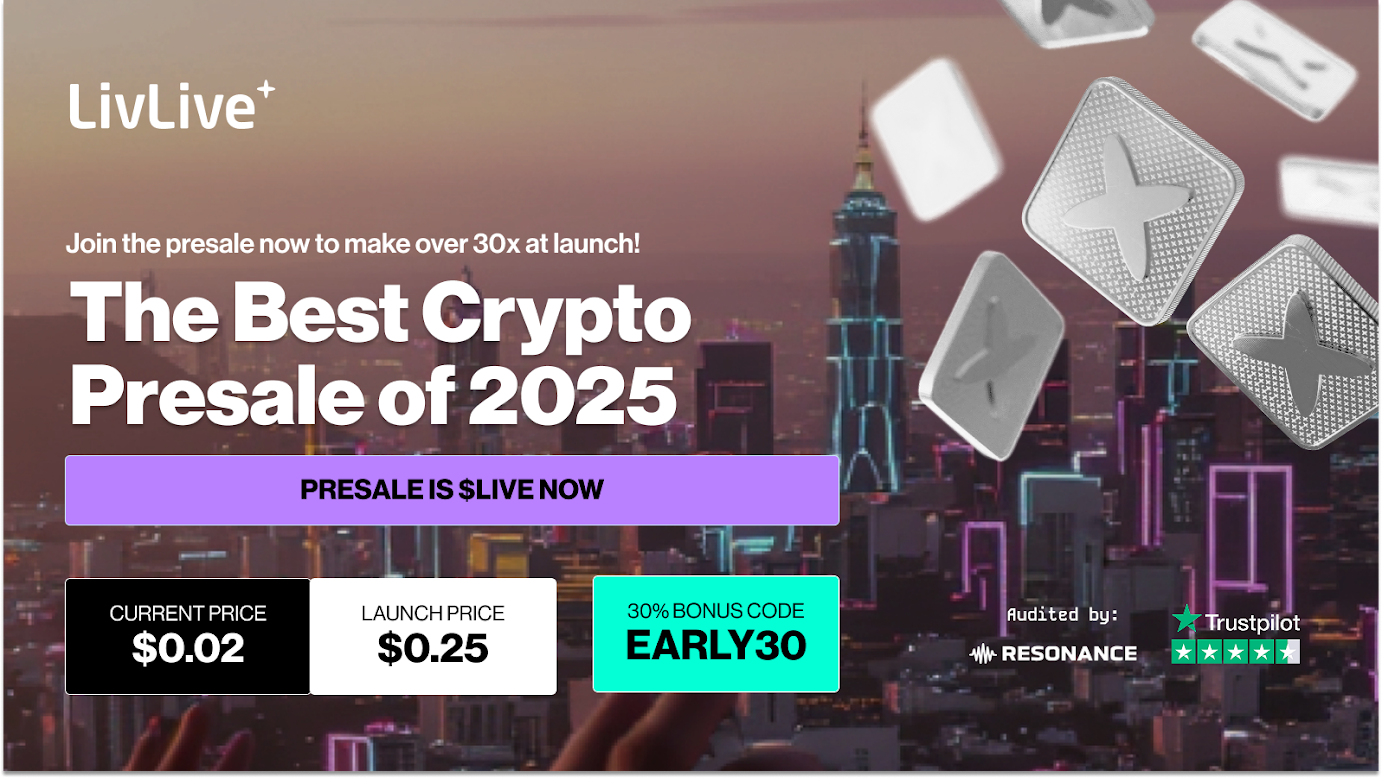 凭借已筹集的超200万美元资金、首阶段0.02美元的低单价及EARLY30优惠码,LivLive当之无愧成为当前最佳加密预售选择,特别适合寻求早期效用与增长潜力的投资者。