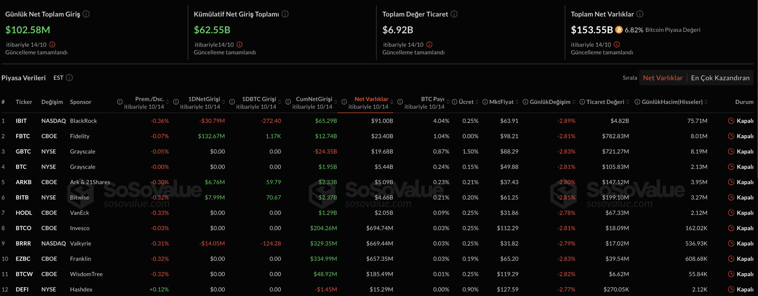 10月14日交易时段结束时,比特币和以太坊ETF实现3.4亿美元净流入