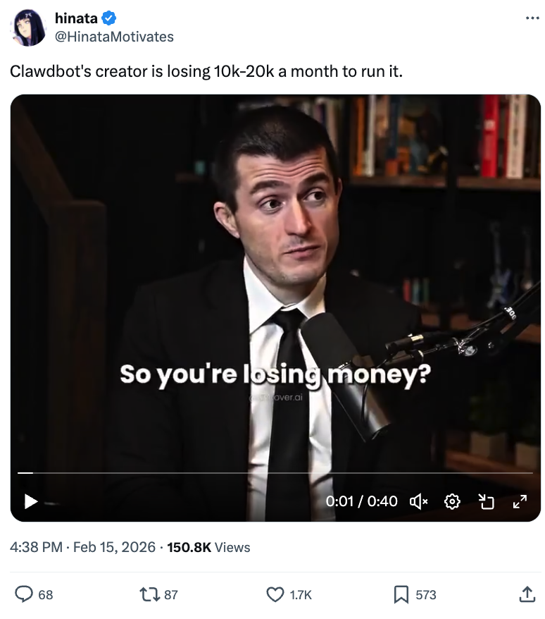 另一方面,OpenClaw创始人Peter Steinberger在拒绝巨额收购要约以维护开源完整性,并选择将项目转移至基金会后引发了讨论。尽管他承认该项目目前每月亏损约1万至2万美元。
