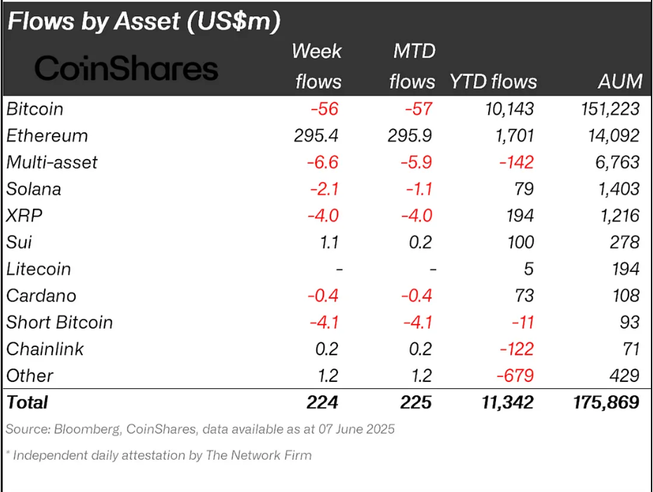 以太坊以2.954亿美元的资金流入领跑数字资产市场,实现连续七周资金净流入。