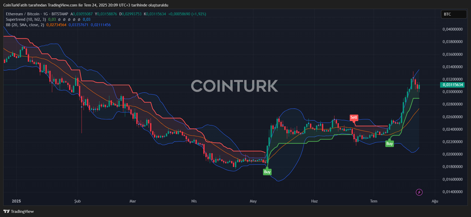 当比特币价格在11.8万美元关口上下波动时,ETH价格保持坚挺至关重要。近期以太坊快速下跌曾引发山寨币获利回吐,虽然抛压已有所减弱,但预计ETH/BTC交易对将出现上涨。