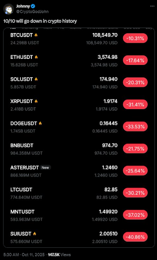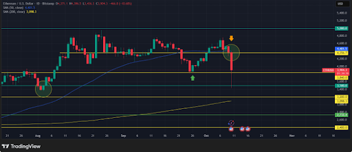 2025年10月11日,美国前总统唐纳德·特朗普确认对华进口商品100%关税将于11月1日生效后,加密货币市场出现大幅抛售。这一声明引发传统资产与数字资产市场的全面风险规避情绪。截至发稿时,以太坊价格从周末的暴跌中反弹,重回4000美元上方。
