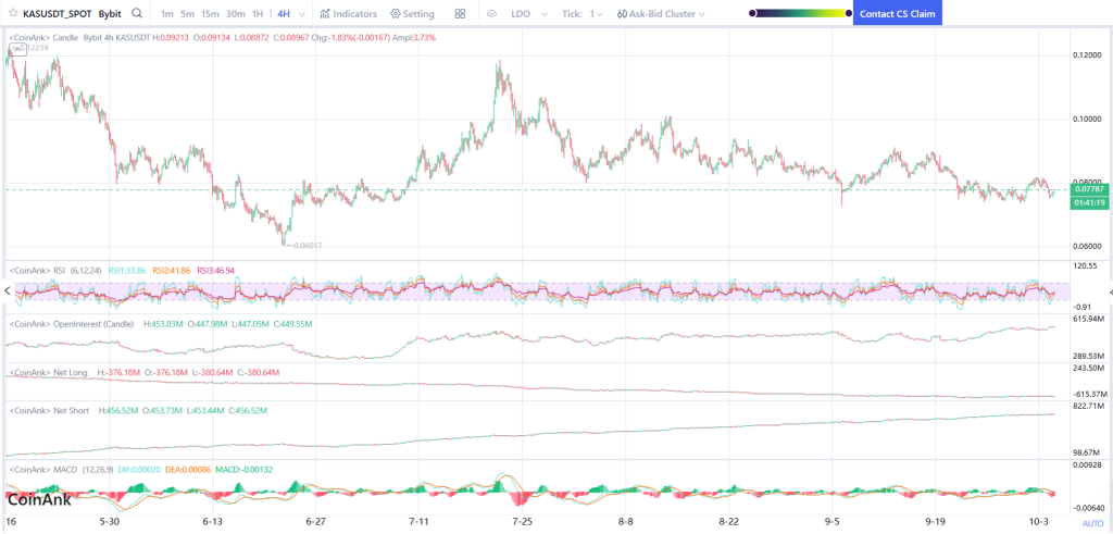 4小时级别RSI指标位于35附近,表明Kaspa并未超买,仍存在充分的反弹空间。简言之,当前价格走势呈现中性而非弱势,市场似乎正处于方向抉择前的"重置"阶段。
