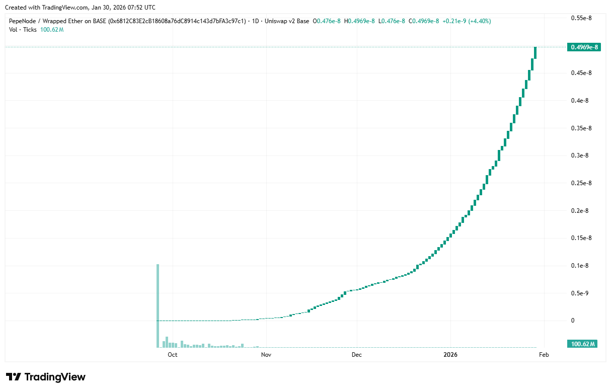 Pepenode专注于通过数字节点进行虚拟挖矿,而非传统硬件。用户通过升级节点来赚取奖励,并设有销毁机制以随时间减少供应。截至1月30日,其预售已筹集约300万美元,代币价格为0.0011825美元,广告宣传的质押奖励率为560%。