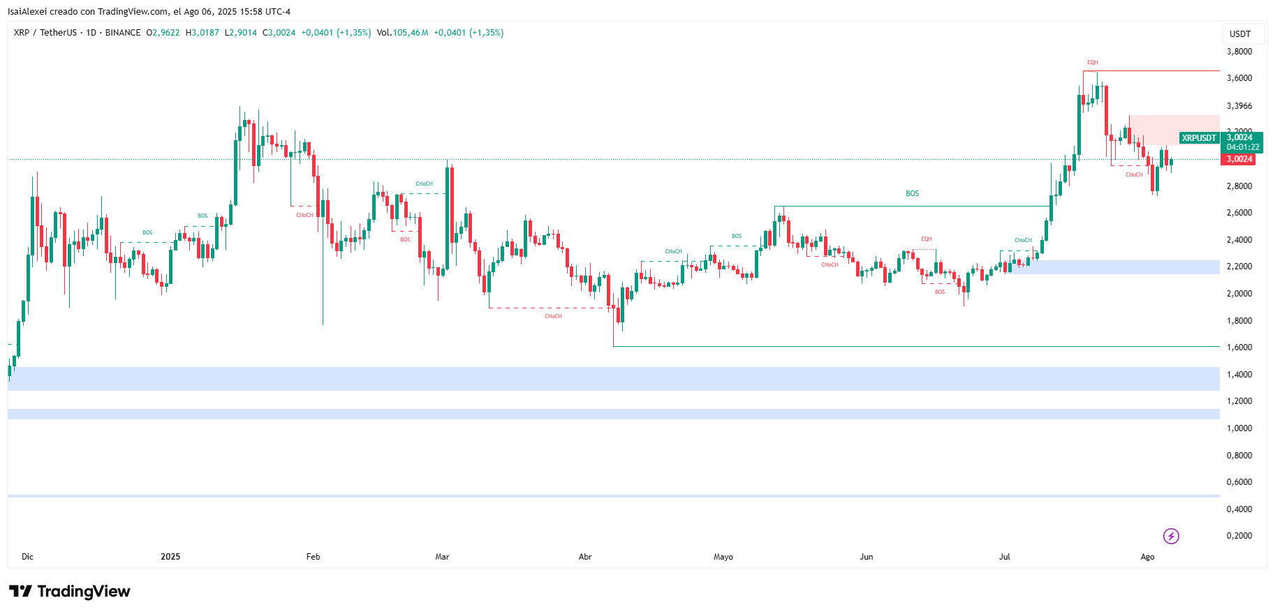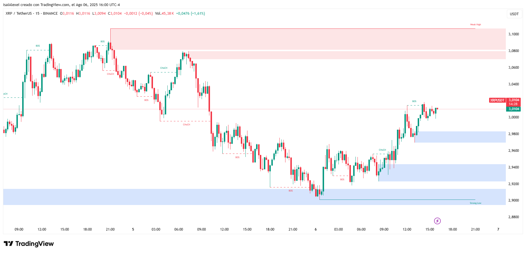 XRP现报2.98美元,日内微涨0.77%,但周线仍下跌4.6%。自7月18日触及3.65美元高点后,该资产持续盘整。看涨预测显示,若动能和机构需求持续,年底前或有望冲击5美元关口。