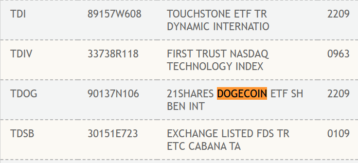 21Shares现货$DOGE ETF($TDOG)与REX-Osprey狗狗币ETF($DOJE)的推出引发投资界广泛关注。