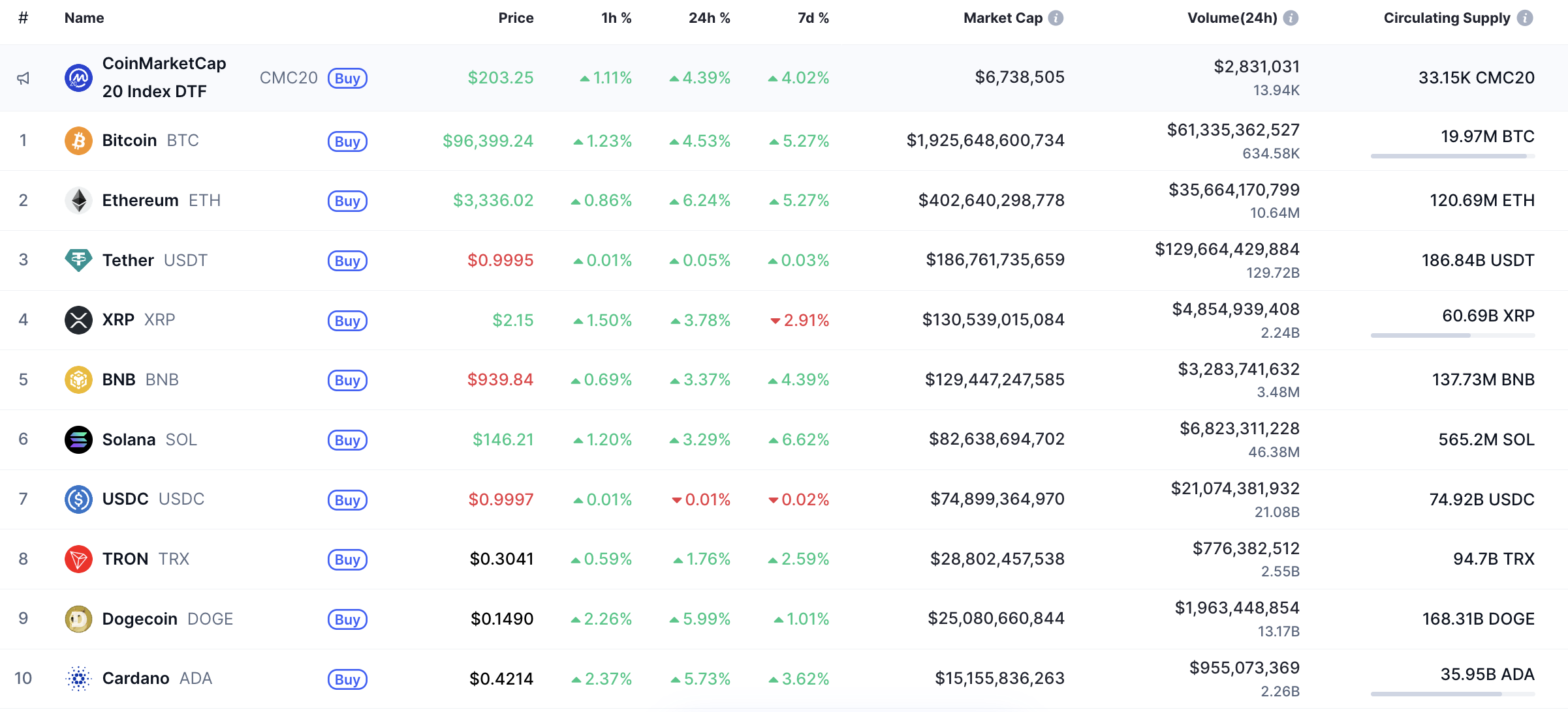 进入本周中期,多头继续主导市场主动权,CoinMarketCap数据显示。