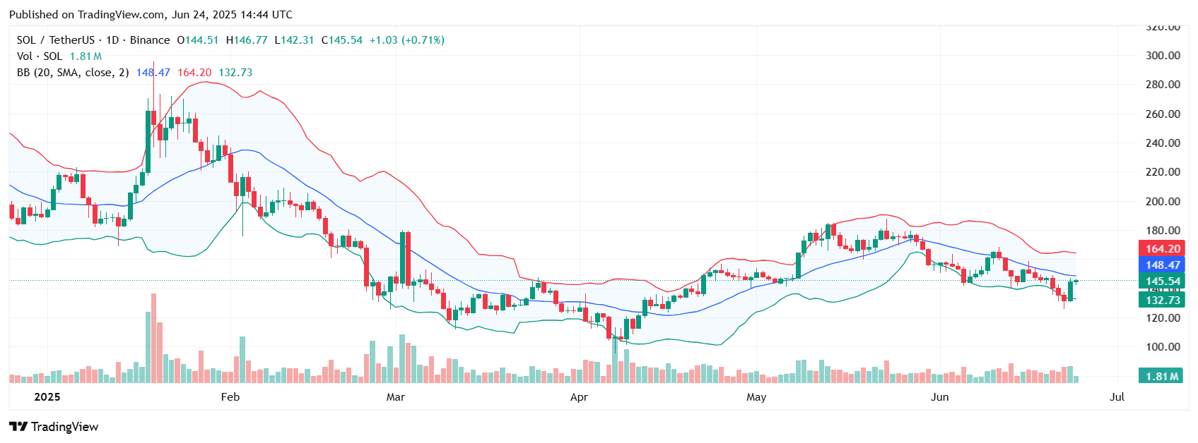 市值排名第六的加密货币Solana(SOL)正释放出积极的技术信号。布林带指标显示,该资产当前具备突破160美元并继续上行的强劲潜力。
