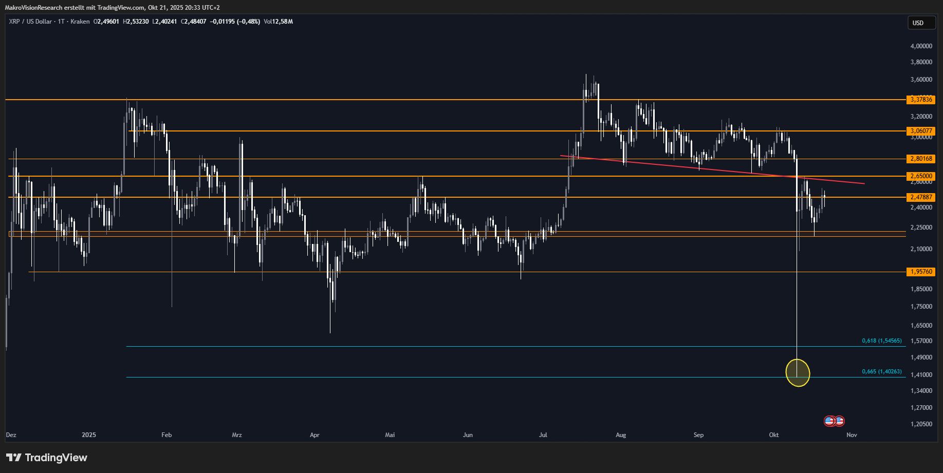 根据MakroVision的分析报告,XRP在1.40-1.55美元区间的"黄金口袋"区域结束了抛售压力,并从此区域强势反弹。
