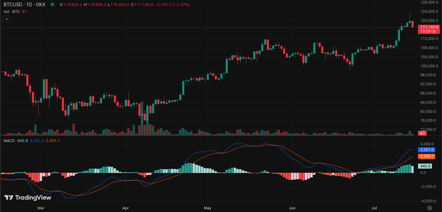 比特币移动平均收敛发散指标(MACD)在所有时间框架内保持完全稳定,同时市值实现价值比率(MVRV)仍远低于历史峰值。此外相对强弱指数(RSI)尚未进入超买区域,这些指标表明比特币距离宏观顶部仍有距离,135,000-140,000美元是合理的中期目标。