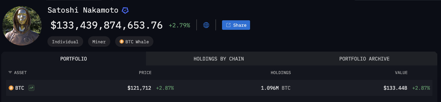 随着比特币价格突破12.3万美元大关,与中本聪早期挖矿活动相关的109.6万枚比特币估值已超过1330亿美元。根据Arkham Intelligence数据,这位匿名创始人现位列全球富豪榜第11位,仅次于以1423亿美元净资产排名第十的谷歌联合创始人谢尔盖·布林。